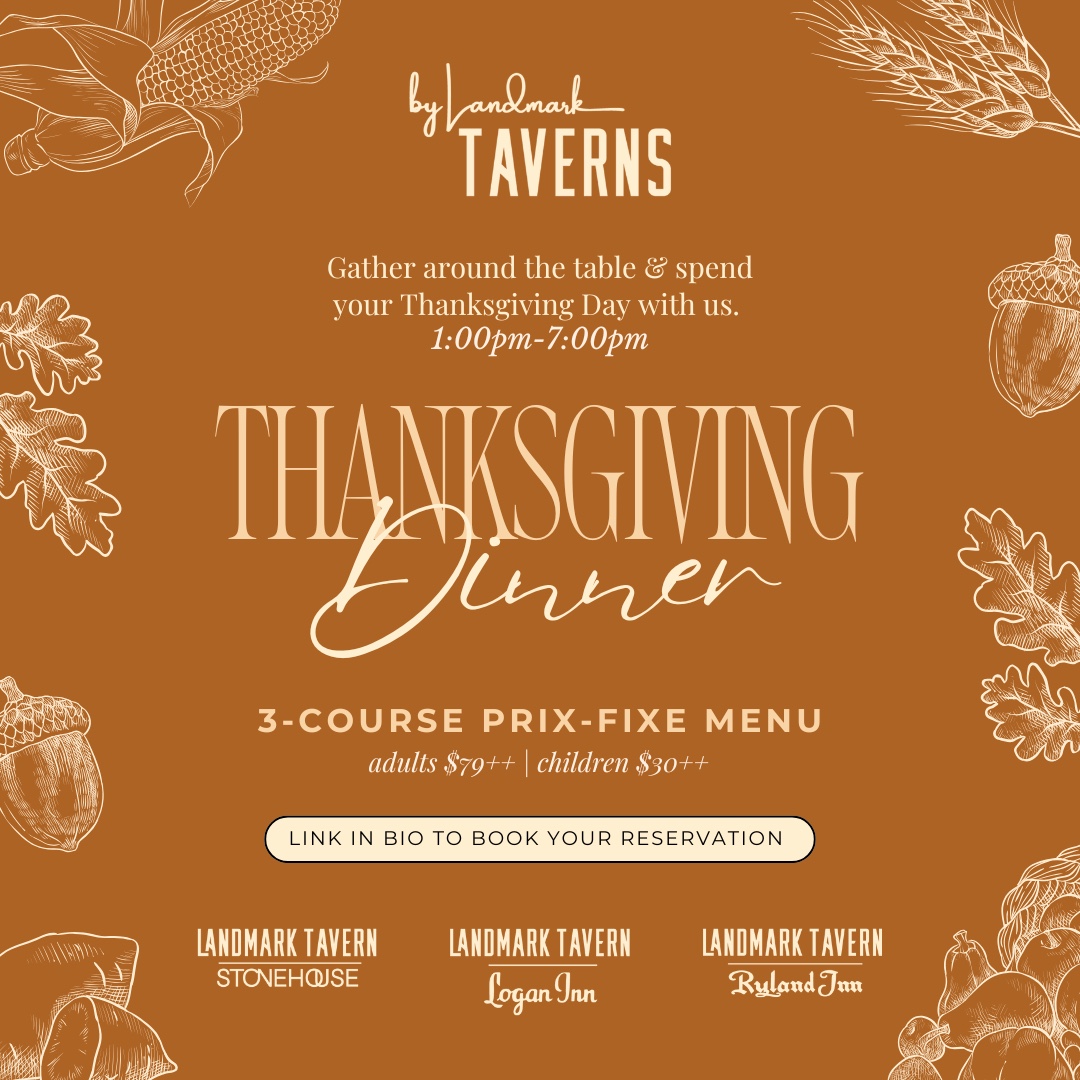 Gather around the table & spend Thanksgiving Day at Ryland Inn. Enjoy a 3-course prix-fixe menu, designed to encapsulate the warmth and comfort of a traditional Thanksgiving feast. Make your reservation here.