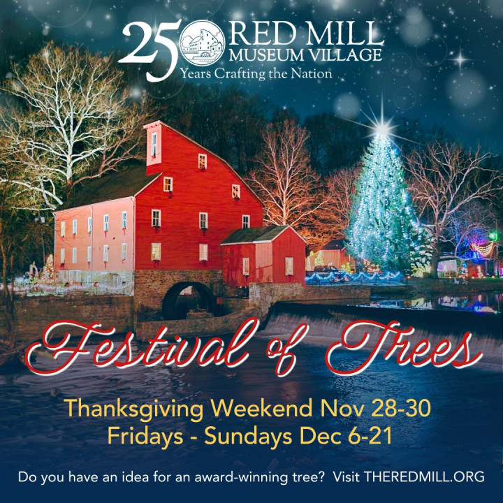 The Red Mill Museum Village is returning for its 16th Annual Festival of Trees. This holiday tradition invites families, individuals, businesses and organizations to decorate Christmas trees, bringing holiday magic to their historic grounds. All proceeds benefit the Museum. The Festival of Trees is open through December 21. Come and stroll the decorated grounds, do your holiday shopping and on Saturdays/Sundays there will be live historic demonstrations and activities for the whole family to enjoy.